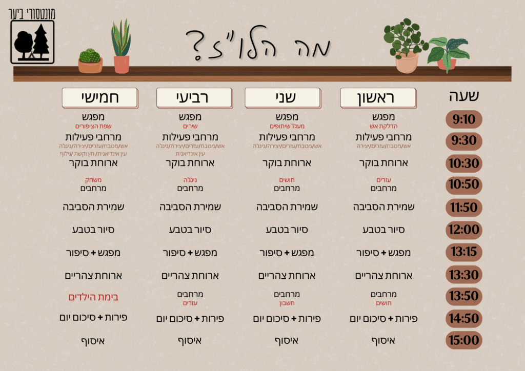 הכל תוך כדי שילוב טבעי של עקרונות מונטסורי בשפה, חשבון, מדעים וכישורי חיים.
